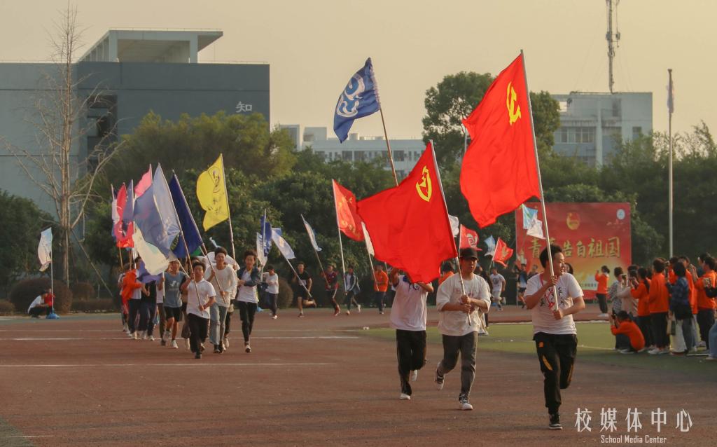 图:闭幕式各学生组织、二级学院接力跑旗活动
