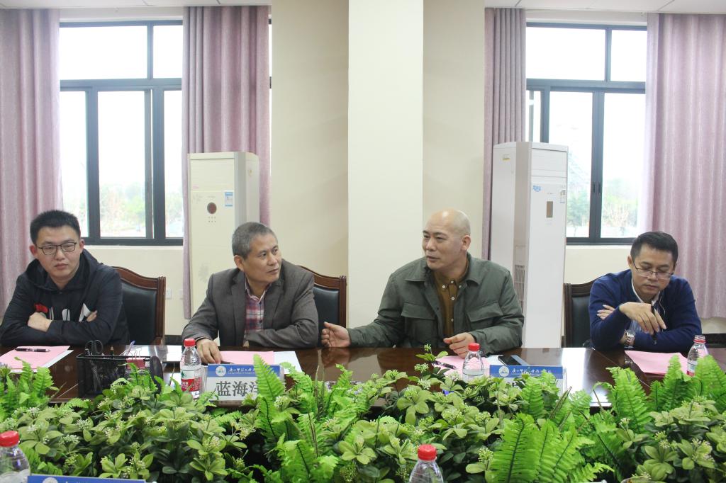广西千年传说影视传媒股份有限公司董事局主席荣斌向与会人员介绍了公司的发展历程,高度认可了我校的办学实力,详细介绍了企业的基本情况以及公司在动漫产影视剧制作方面的成果,并表达了合作的意愿,希望能与漓江学院携手,打造桂北平台。