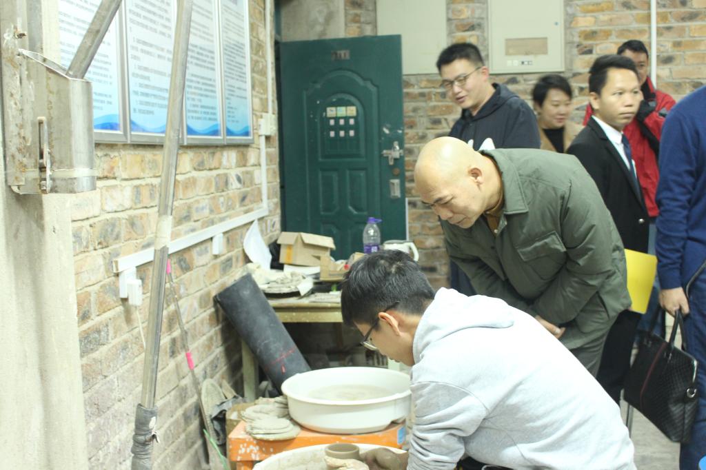 图:千年传说影视传媒公司董事局主席荣斌参观陶艺工作室