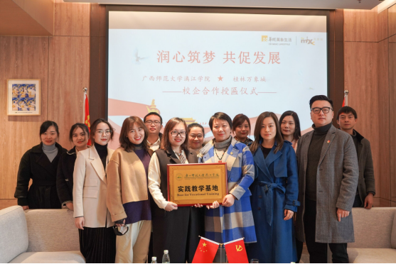 1月19日,学校与桂林万象城举行实践教学基地授牌仪式。我校副校长杨庆庆,桂林万象城党支部书记覃筱丹、人事部总监黄晶晶,我校商贸与法律学院/名淘电商学院负责人、电子商务教研室教师代表参加授牌仪式。
