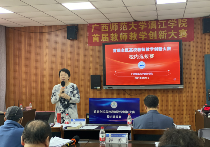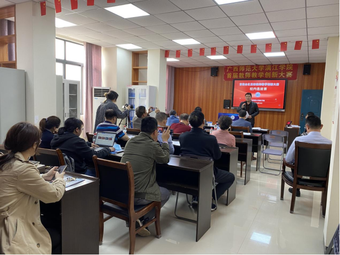 3月18日上午,我校首届教师教学创新大赛暨首届全区高校教师教学创新大赛校内选拔赛开幕式如期举行,学校副校长杨庆庆出席开幕式并致辞,大赛邀请了广西师范大学、桂林理工大学、桂林旅游学院相关专家担任评委,教学科研处、各二级学院主要负责人以及各参赛教师团队参加了当日比赛。