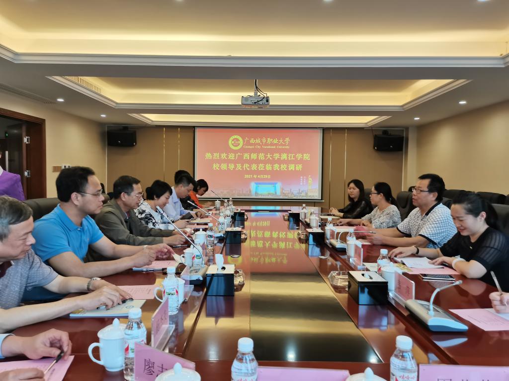 4月29日,校领导杨树喆、邓志平、杨庆庆,党政事务部、教学科研处、合作发展处主要负责人及桂林新城投资开发集团有限公司代表一行11人先后赴南宁学院、广西城市职业大学考察学习,就区域经济社会发展与办学特色凝练、二级机构设置与中层干部职数配置、内部治理体系建构与行政职能发挥等问题进行深入交流。