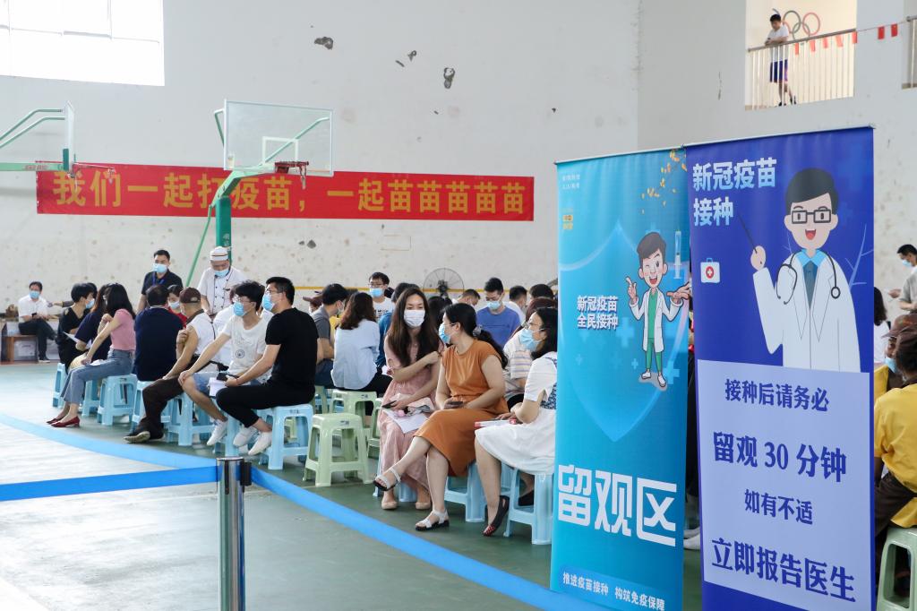 图:完成接种后的人员,在场馆内的“留观区”就座休息