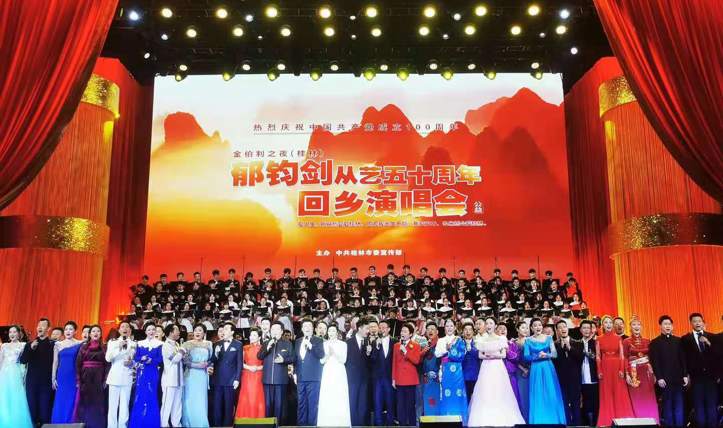 5月15日,我校教育与音乐学院100名音乐学专业学生组成的合唱团为著名歌唱家郁钧剑从艺50周年回乡音乐会伴唱助演,获得主办方和现场观众高度赞誉。此次演出由中共桂林市委宣传部主办、桂林市文学艺术界联合会、中国东盟艺术学院等协办,阵容强大,众星云集。著名主持人杨澜担任主持,夏小汤担任指挥,姜丽娜担任音乐总监,蒋赛担任钢琴伴奏,广西交响乐团、桂林爱乐弦乐组担任伴奏,张也、吕继宏、刘和刚等20余名著名歌手现场助阵演出。