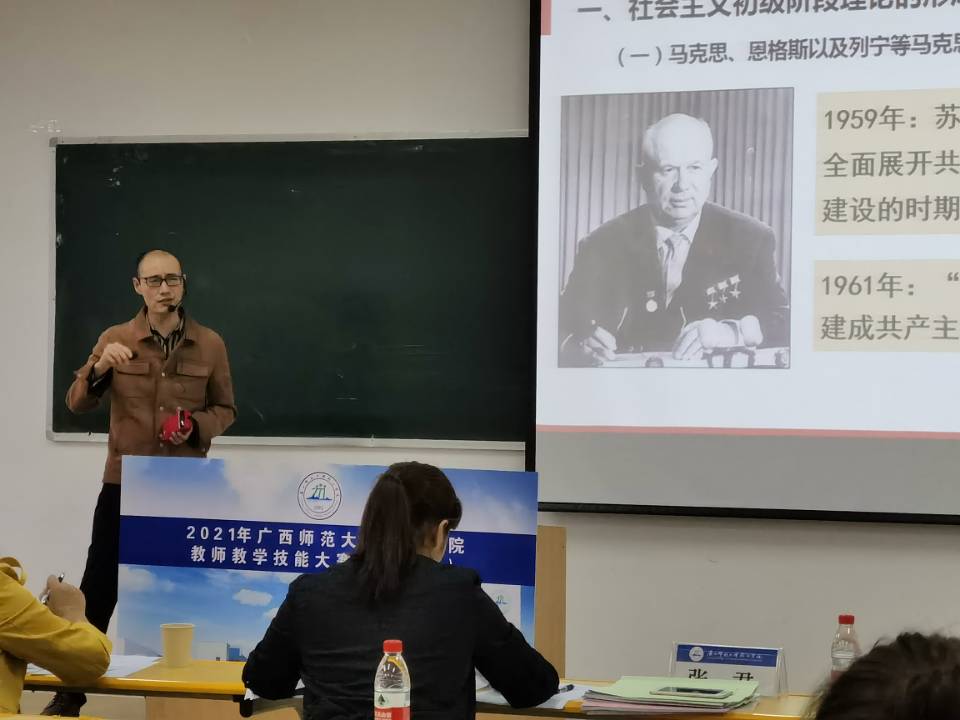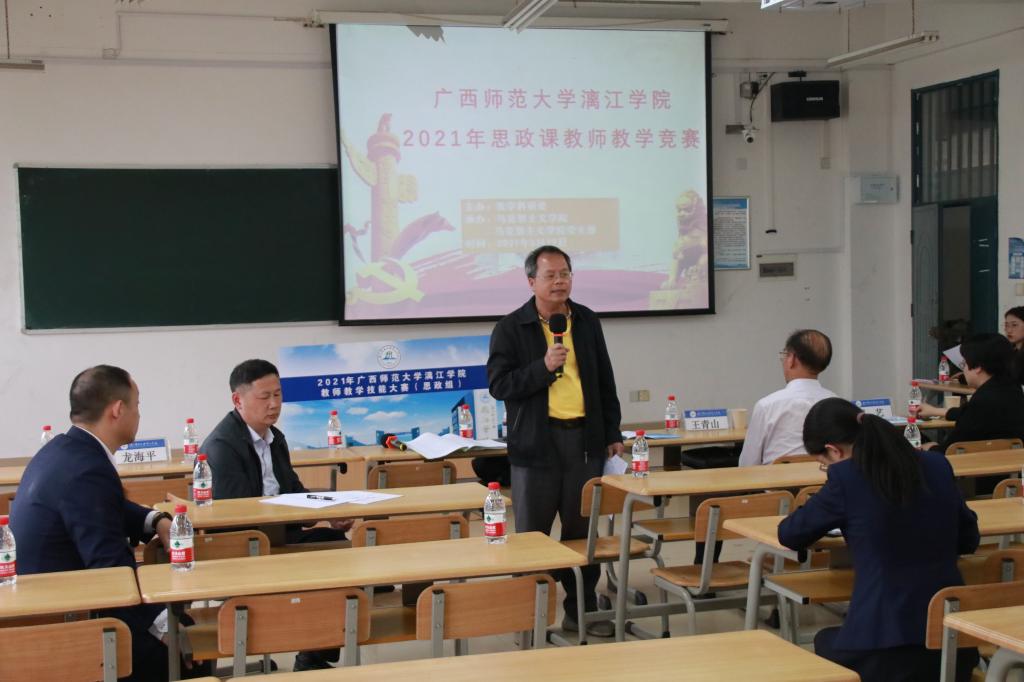 5月19日,我校在1315、1316教室举行2021年思政课教师教学竞赛,校党委书记唐文红出席开幕式并致辞。我校首席教授、博士生导师黄瑞雄教授、桂林理工大学马克思主义学院党委书记王青山教授、广西师范大学马克思主义学院副院长邓小玲教授、广西师范大学马克思主义学院周艺副教授、北海艺术设计学院马克思主义学院院长姜献生教授、桂林电子科技大学信息与科技学院马克思主义学院院长龙海平教授、南宁学院马克思主义学院副院长董艳副教授、桂林航天工业学院马克思主义学院张君副教授出席竞赛活动,学校教学科研处、马克思主义学院相关人员,全体思政课教师参加了开幕式。
