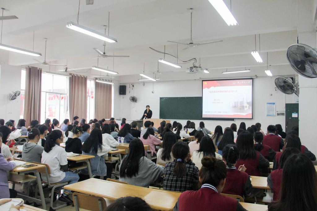 图:校党委书记唐文红为入党积极分子讲专题党课