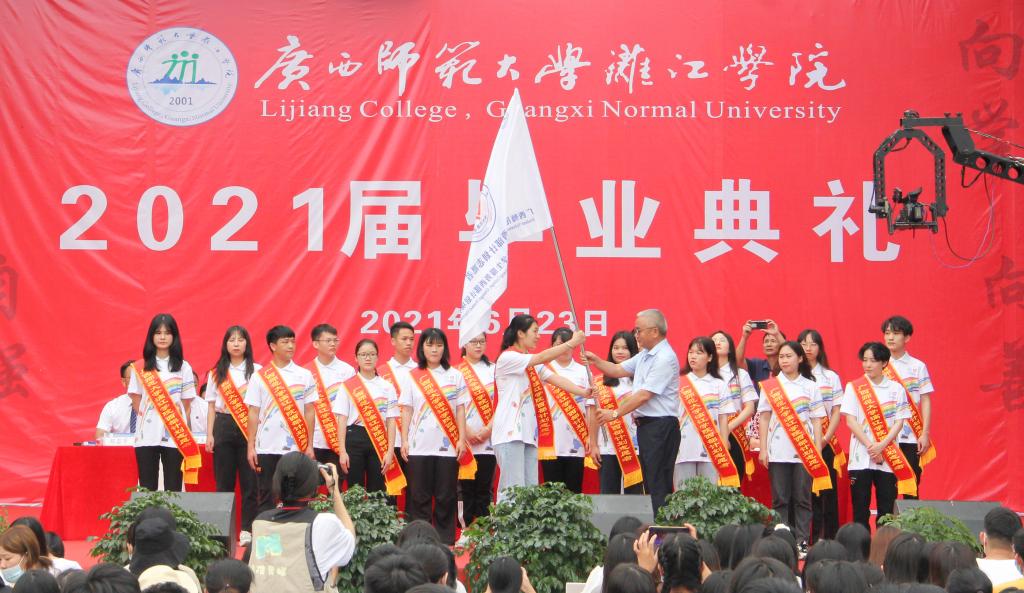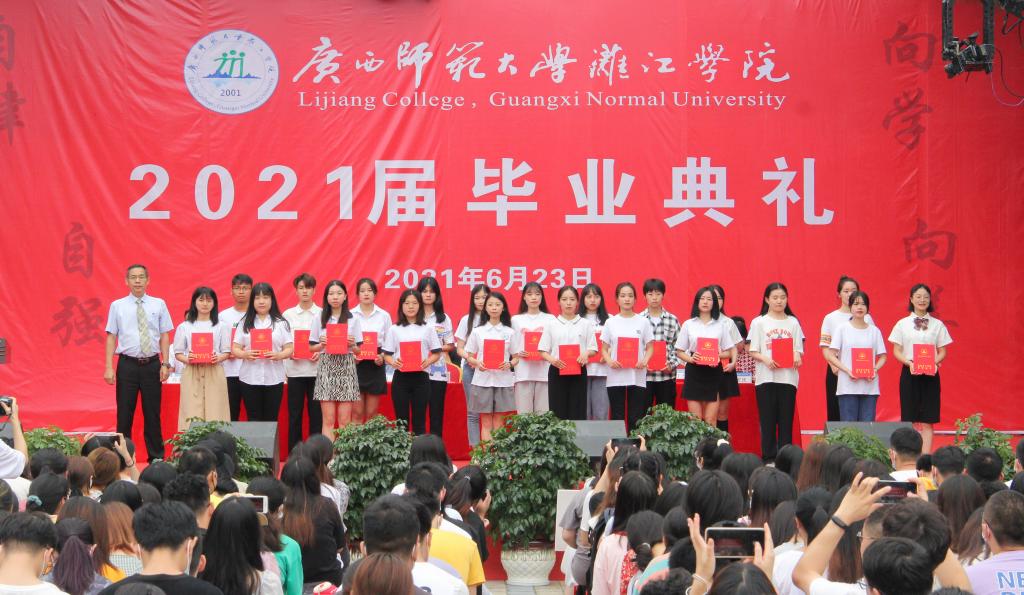 副校长祝芸芸宣读了2021年全区普通高等教育优秀大学毕业生表彰文件。唐文红书记为获得“2021年全区普通高等教育优秀大学毕业生”荣誉称号的毕业生颁发了证书。