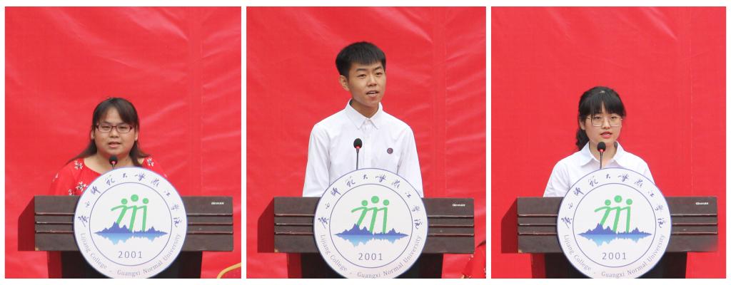 经济与管理学院教师代表庞仙梅、传媒学院2017级播音与主持艺术专业毕业生代表苏钊凝同学、理工学院2018级数学与应用数学专业在校生代表曾苡薇同学先后发言,分别表达了对毕业生的深情祝福以及对母校培养的深厚感激之情。