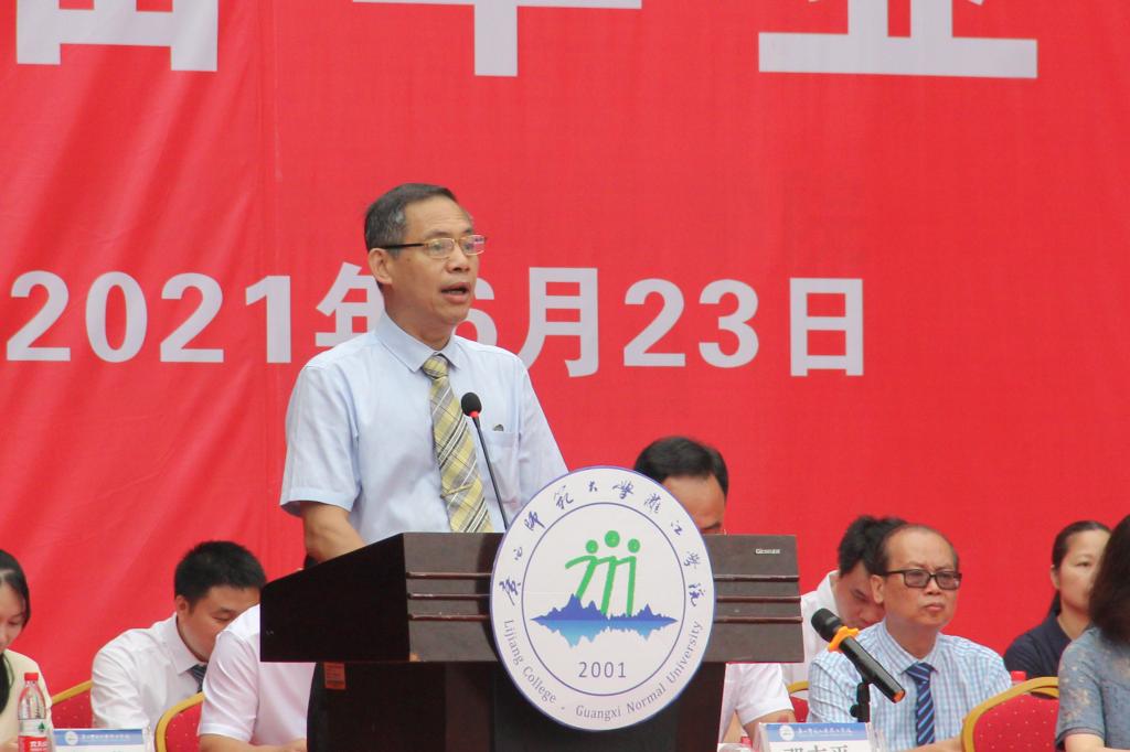 校长杨树喆代表全校师生向2021届毕业生表示热烈的祝贺和美好的祝福,向全体老师致以崇高的敬意和衷心的感谢