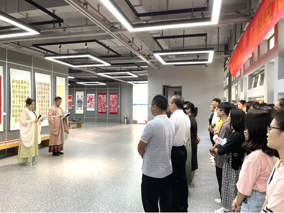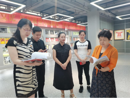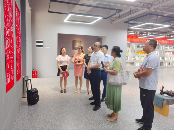 桂林市剪纸项目非物质文化传承人闵江红教授(右二)到场参观指导