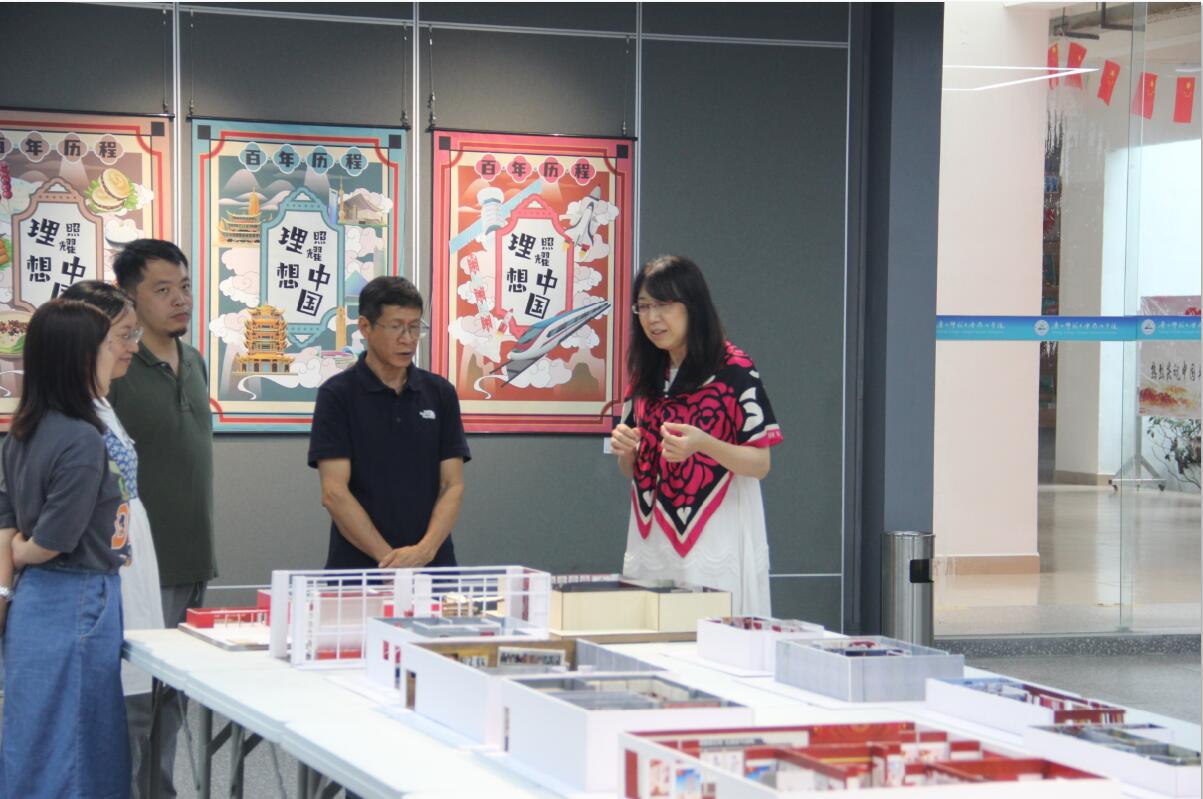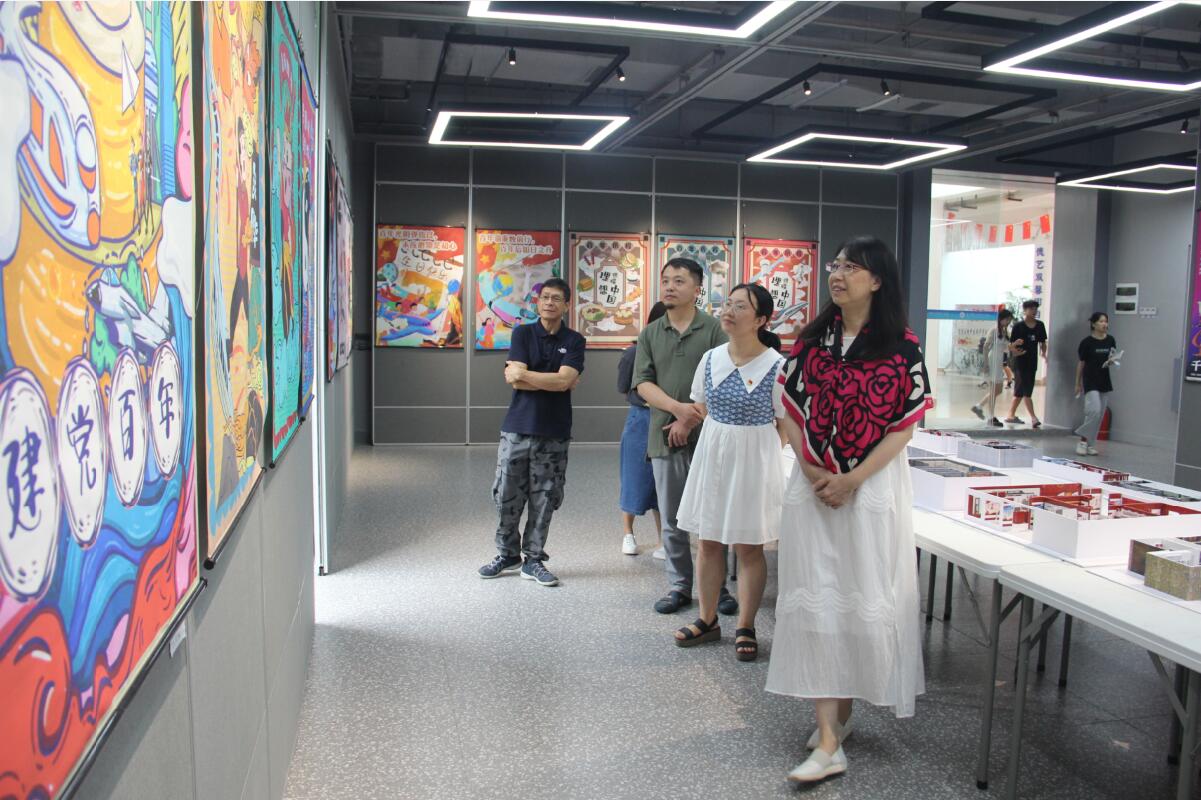 7月1日,校党委书记唐文红来到学校艺术创意展示中心,参观指导由设计学院举行的“跟党走 感党恩,庆祝建党100周年”课程思政作品展。