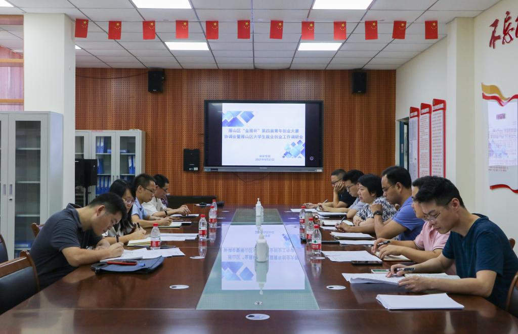雁山区人社局到我校调研学生就业创业工作,校领导邓志平、杨庆庆出席座谈会