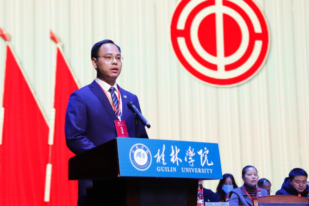 校长杨树喆在致辞中简要回顾了建校20余年来特别是桂林学院独立设置以来取得的发展成就,并对学校教职工代表大会和工会组织作出的贡献给予了充分的肯定。他接着指出,本次大会是学校深入学习贯彻党的十九届六中全会精神和习近平总书记关于教育、工会的重要论述、以及自治区第十二次党代会精神,科学实施学校“十四五”发展规划纲要的关键时期召开的一次重要会议,是学校站在新的历史起点,适应新形势、把握新机遇、谋求新发展的大会,是学校政治生活中的一件大事。他表示,本次大会将选举产生学校第一届教职工代表大会执行委员会、工会委员会及经费审查委员会、女教职工委员会等四个委员会的委员和学校第一届监事会教职工代表,同时听取《关于开展对〈桂林学院章程〉进行修订的说明》,希望各位代表和与会同志,以高度的责任感和强烈的使命感,认真履行权利和义务,积极为学校的改革发展出谋划策、建言献策,完成好会议的各项议程。
