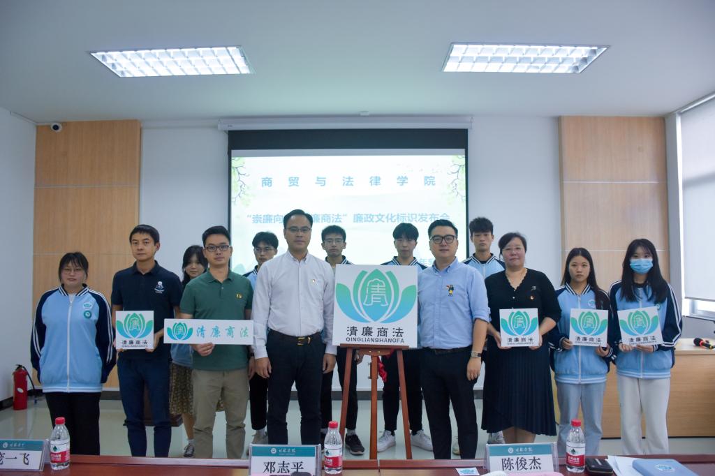 5月18日下午,我校商贸与法律学院在图书馆c馆三楼会议室举行“崇廉向善·清廉商法”廉政文化标识发布会,校纪委负责人、副校长邓志平出席会议,党政事务部相关负责人,商贸与法律学院党总支班子成员、教师党员及学生代表参加会议。