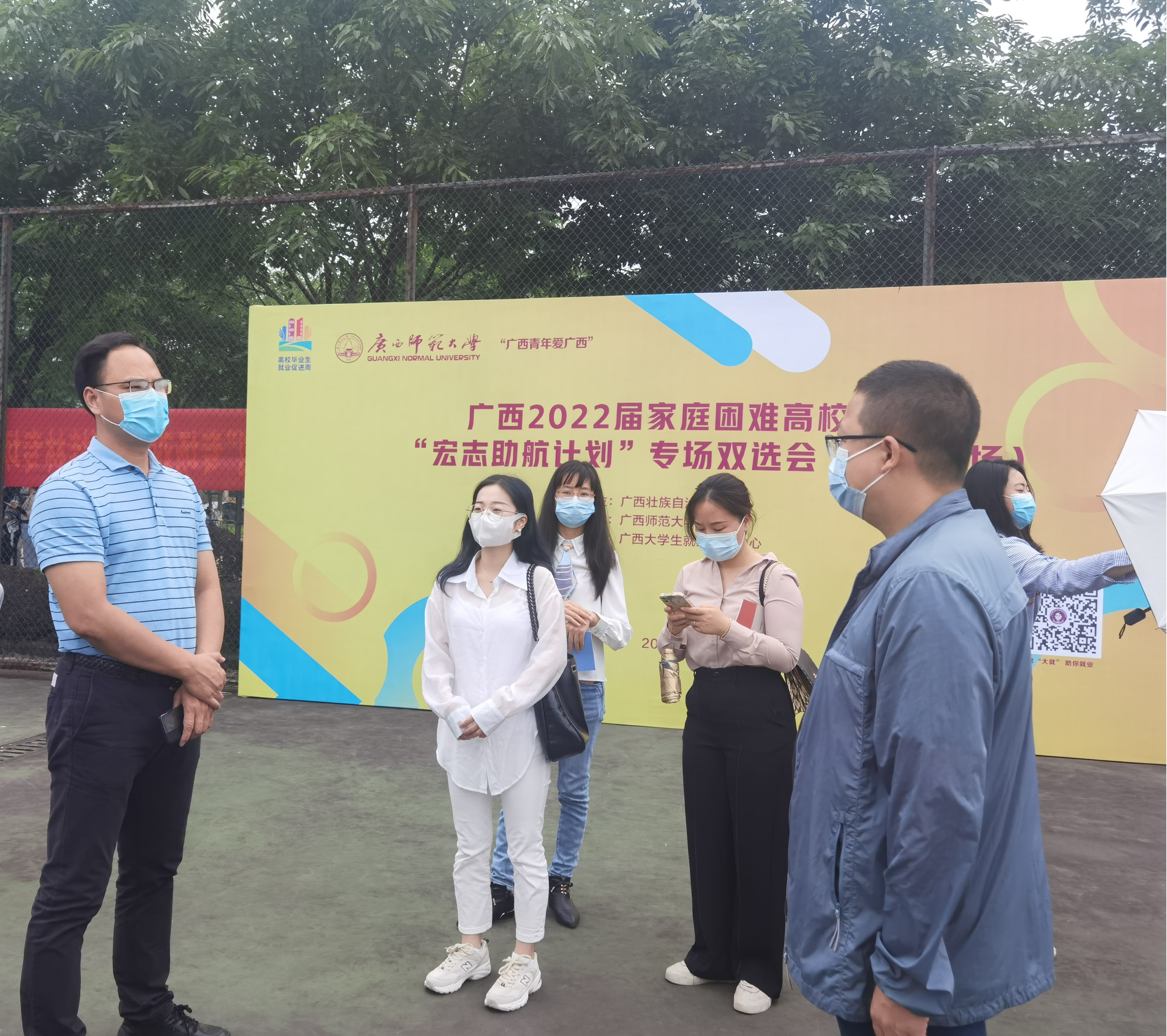 5月20日,由广西教育厅主办,广西师范大学承办,广西大学生就业服务中心协办的广西2022届家庭困难高校毕业生专场双选会暨“宏志助航计划”专场招聘会(桂林专场)在广西师范大学雁山校区举办。为贯彻落实全国普通高等学校毕业生就业创业工作电视电话会议精神,抓住毕业生求职黄金期、冲刺期,加快推动就业工作进展,校纪委负责人、副校长邓志平带队,学校就业创业指导中心全体人员,相关二级学院辅导员参加了此次招聘活动。244名毕业生在学校统一组织下参加此次双选会。