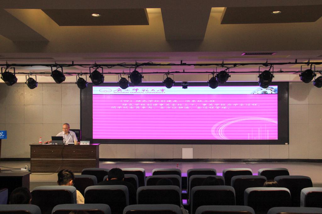 为进一步落实自治区教育厅关于广西绿色学校创建的要求,加快推进我校绿色学校创建工作。6月9日上午,我校邀请了广西师范大学教育学部、广西绿色学校创建和评估专家陈闻研究员开展题为《绿色学校评价指标分析》专题培训讲座。讲座由刘文革副校长主持,各职能部门相关负责人、各二级学院班子成员及学生代表现场聆听了讲座。