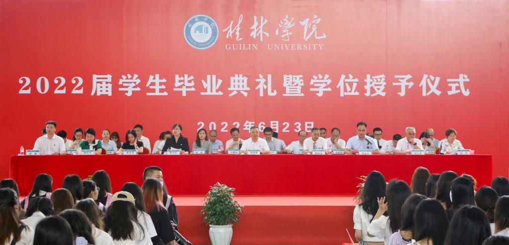 “在山水甲天下的地方,桂林学院令人向往……”“在大雁腾飞的地方,桂林学院美名远扬……”在最后一次全场奏唱《造就人才的殿堂》的悠扬校歌声中,学位授予仪式圆满结束。