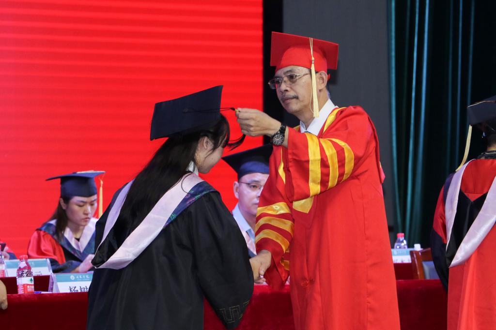 骊歌奏响时,依依惜别情。6月23日上午,我校2022届学生毕业典礼暨学位授予仪式采取“线下主会场+线上直播”方式隆重举行。董事长周道林应邀出席毕业典礼并为自治区级优秀毕业生颁发证书。