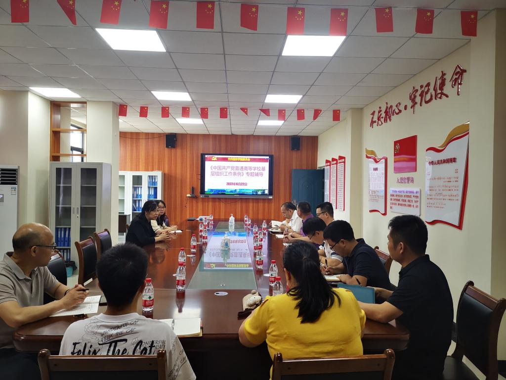 6月22日下午,学校党委在知善楼8312会议室开展《中国共产党普通高等学校基层组织工作条例》专题学习辅导,参加“2022年全区民办高校党务工作者培训班——加强民办高校党建工作的思考与实践中国共产党普通高等学校基层组织工作条例学习”的专题网络培训。学校党组织负责人唐文红出席培训讲座,党政事务部相关负责人、各党总支书记和副书记参加培训。