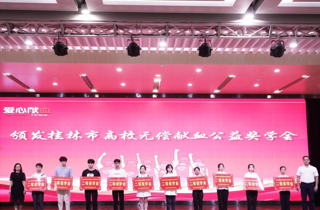 表彰会上还为获得“桂林市高校无偿献血先进个人”、“桂林市高校无偿献血公益奖学金”、“桂林市高校无偿献血奉献奖”的个人颁奖。我校张紫晨、刘明菲、余新毅等3名师生获“2021年度桂林市高校无偿献血先进个人”,包淑娟、李杰等5位同学获“2021年度桂林市高校无偿献血公益奖学金”,雒腾、严秀洁等33位同学获“2021年度桂林市高校无偿献血奉献奖”。