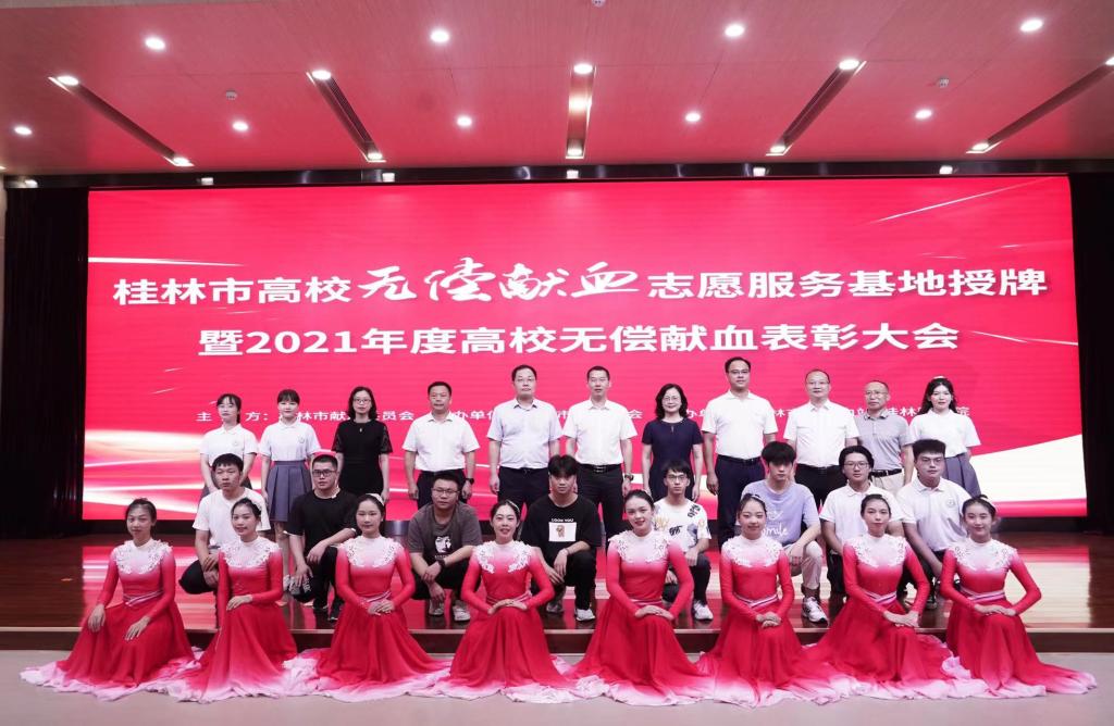 学校荣获“2021年度桂林市无偿献血先进单位”,邓志平(右四)代表学校领奖