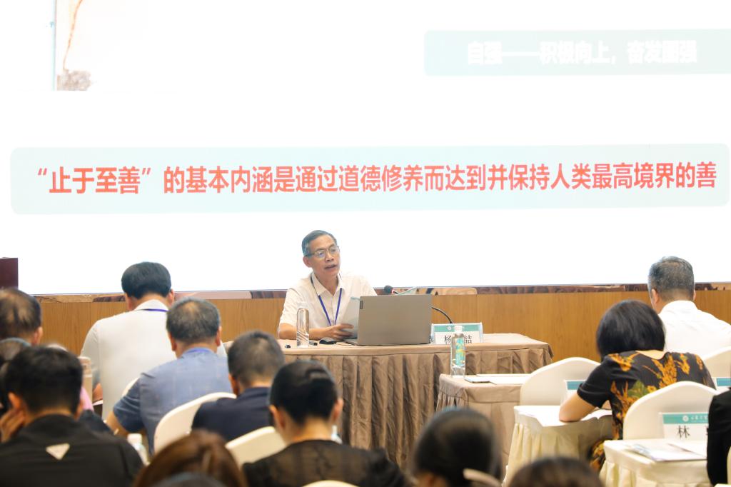 在报告的第三部分,杨树喆首先阐述了“至善”的时代意蕴,指出“至善”作为我校办学理念,至少包括三个层次的境界:一是人格至善,二是道德至善,三是思想至善。人格至善是要保持个体心灵宁静的境界,也就是中国传统文化中“静”的心理状态。“静”要求我们心态平和,去浮求实,不要有杂念,做人做事不抱有成见,这样的人就能够明白透切地认识事物,思想开阔,襟怀坦荡,善待人生。道德至善是要形成“忠诚”的人格,这是人之为人的道德境界。如何使自己保持“忠诚”人格,中国传统文化中,有“士为知己者死”“舍生取义”之说,所以人的道德理想为大,富贵利达为小,人若实践了这种“大”,不但可以忘却“小”,而且可以在内心深处实现一种厚度的充实、平静和快乐!因此,师生之间、干群之间要以诚相见。彼此信赖,个人对待组织(团队、学校)要忠心耿耿,对待事业要兢兢业业。思想至善是要有生存目标、价值观念和理想信念。这是“至善”的最高境界。我们只有把自己的学习、工作与生活同团队、学校、国家的发展联系起来,我们才能实现我们的人生价值;理想信念是个体的一种内在的政治信仰,是个体为民族、为国家努力奋斗的个性倾向。我们的生存目标、价值观念与理想信念是一致的,这是和谐校园建设的基础。学生要勤学苦练,善于思考,勇于创新,完善自我,努力担当起国家建设和民族振兴的大任。教师要对学生、对家长、对社会、对民族负责,为培养出一大批合格的社会主义建设者和可靠的接班人。这就是我们的生存目标、价值追求和理想信念统一性的反映。
