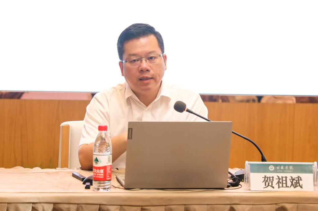 贺祖斌的专题报告由“高等教育的发展情况”“高等教育‘四新’建设”“广西新文科建设发展情况”“独立学院转设后的可持续发展”等四个部分组成。