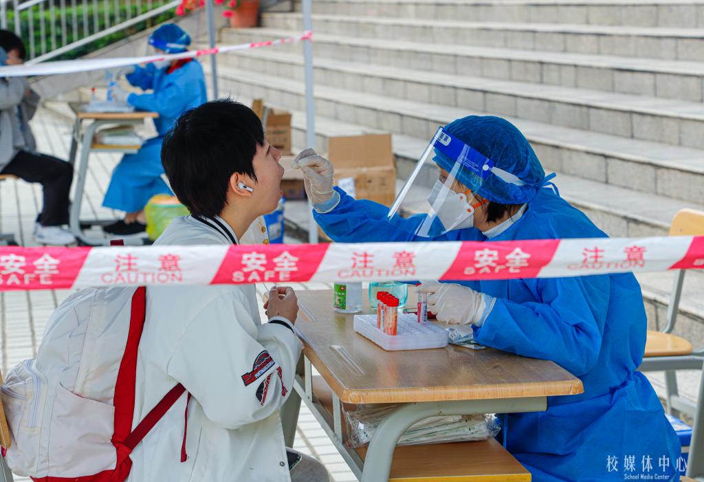 对新生进行核酸检测采样