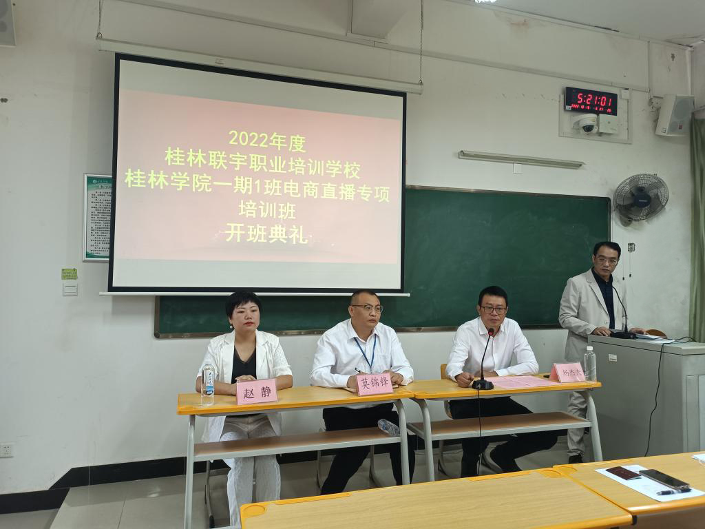 10月15日上午,学校首期广西专项职业能力认证(电商直播)培训班在至善楼3508/3509教室顺利开班,雁山区商贸与投资促进局局长莫锦锋、副局长赵莉莉,培训班承办单位桂林联宇职业培训学校校长赵静、副校长罗忠,我校教学科研处主要负责人出席了开班式。学校副校长杨庆庆在新生开学典礼结束后到培训班与99名2019级毕业班参培学员亲切交流。