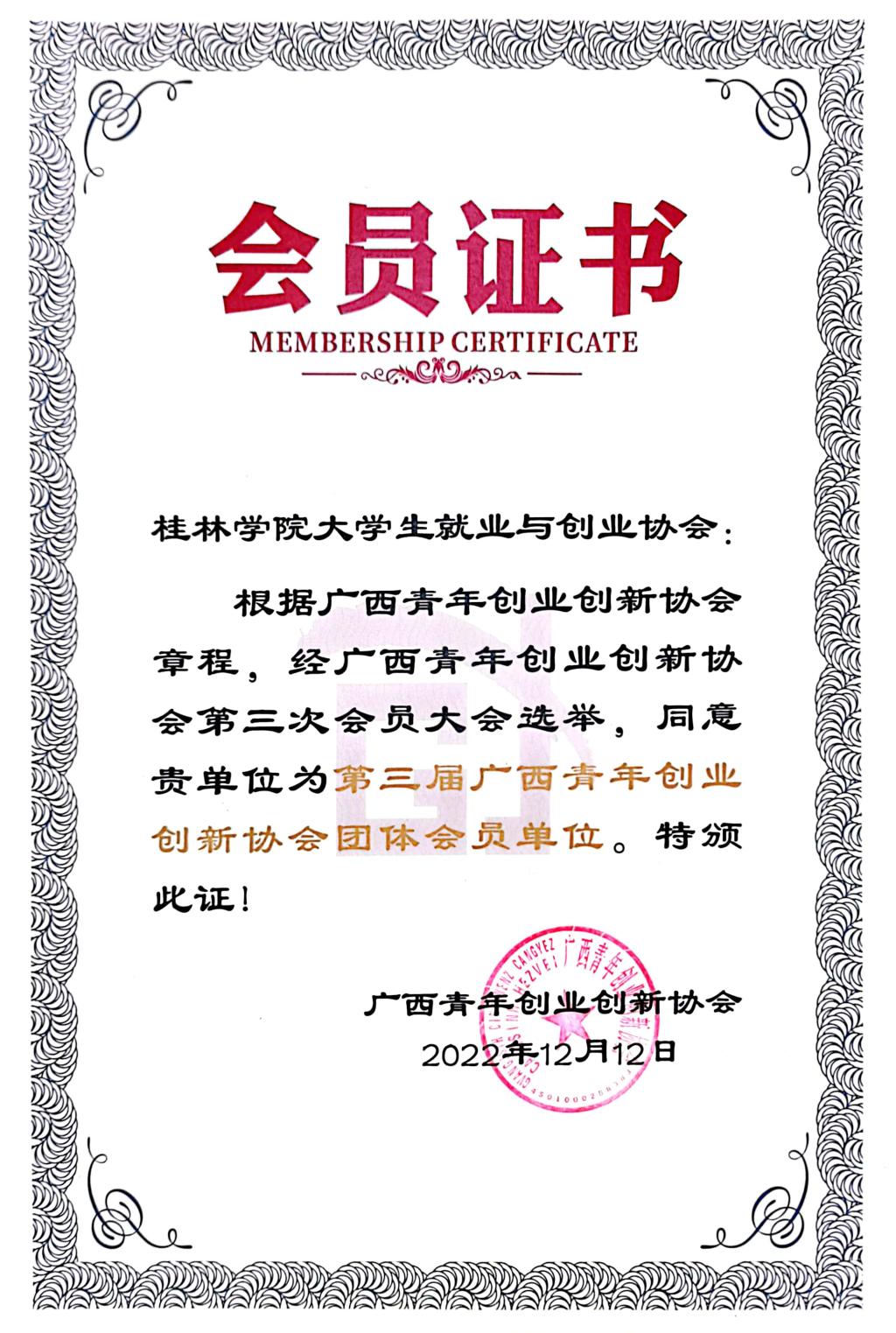 根据广西青年创业创新协会章程,经广西青年创业创新协会第三次会员大会选举,我校大学生就业与创业协会被评为“第三届广西青年创业创新协会团体会员单位”。