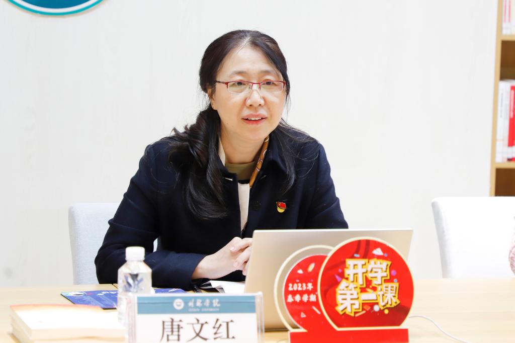 3月10日下午,我校2023年春季学期“开学第一课”在图书馆A馆主题阅读体验区开讲。学校党委书记、督导专员唐文红以《做中国式现代化征程上的有为桂院青年》为题讲授了一堂催人奋进的“开学第一课”。