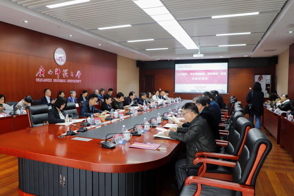 签约仪式后,双方与会人员参观考察了广西师范大学雁栖湖等校园文化景观,及桂学博物馆、校史馆等。并分为“人才培养、专业课程建设”“学科建设”“师资队伍及学校管理”和“科学研究”四个小组进行专题对接座谈交流。