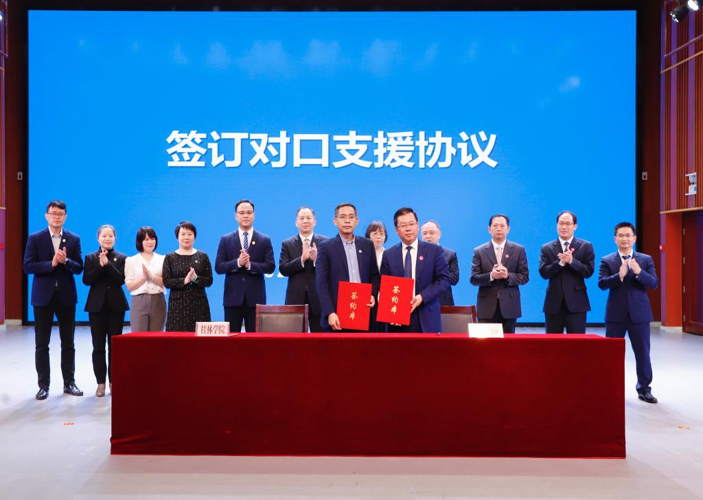 贺祖斌表示,广西师范大学将始终以高度的政治责任感,服务广西教育整体水平提升,助推广西高等教育高质量发展;将坚持问题导向和需求导向,围绕合作协议和工作清单,细化工作方案,明确任务举措,共同打造对口支援合作新典范;将秉持互利互赢的基本原则,聚力打造教育发展共同体。他强调,桂林学院与广西师范大学有着深厚的历史渊源和合作基础,相信在自治区党委、政府的领导下,在自治区教育厅的大力支持下,双方的对口支援必将有力推动我区高等教育振兴发展。