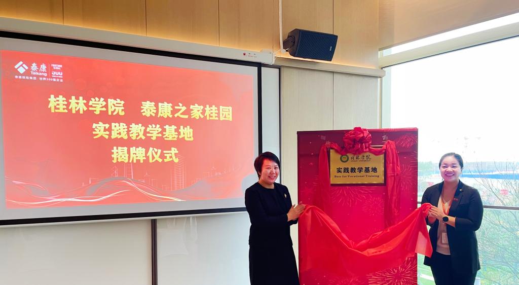 座谈交流结束后,杨庆庆与泰康之家桂园社区、桂园康复医院分别举行校企合作签约仪式及校外实践基地揭牌仪式。