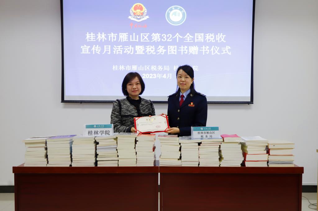 4月,是第32个全国税收宣传月。6日上午,学校与桂林市雁山区税务局在学校图书馆报告厅联合举办“学思践行二十大,校税共建助力税法宣传”活动,活动由管理工程学院、财务处、图文信息中心共同承办。学校副校长祝芸芸,雁山区税务局局长李卉、副局长王军、副局长王志萍等出席活动,管理工程学院、财务处、图文信息中心师生代表,雁山区税务局代表共同参加了活动。