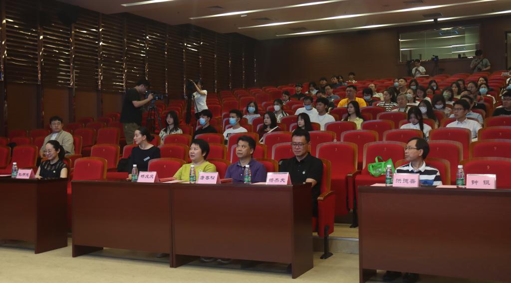 桂林抗战文化讲座上,博物馆副研究馆员龙文勤就“永远的旗帜——桂林抗战文化名人专题陈列”展览内容,从名人事迹和名家作品两方面阐述桂林城的红色血脉和历史文化意义。研学活动环节,博物馆员带领我校师生参观《漓水春秋》展厅。通过讲解,同学们在历史文物的古今变换中了解并学习“桂学”,品味桂林深厚的历史文化底蕴和红色文化基因。