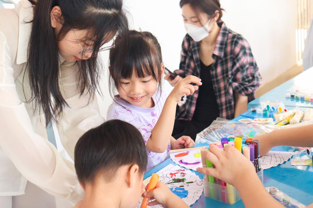 活动中,教育学院学前教育专业同学们为孩子们表演了生动形象的手偶剧《谁来当大王》,孩子们情绪高涨,积极参与手偶互动;现场讲述的幼儿经典故事《小老鼠找妈妈》,充满温情和爱的故事为现场营造了良好的氛围;亲子彩绘活动,孩子们发挥无穷想象,用画笔勾勒出心中的美好,用油彩把快乐的童年时光绘上缤纷绚丽的颜色。