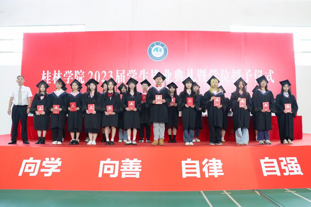 毕业典礼在全体师生声情并茂的《桂林学院赋》诵读声中达到高潮,并在悠扬的《造就人才的殿堂》校歌声中落下帷幕。