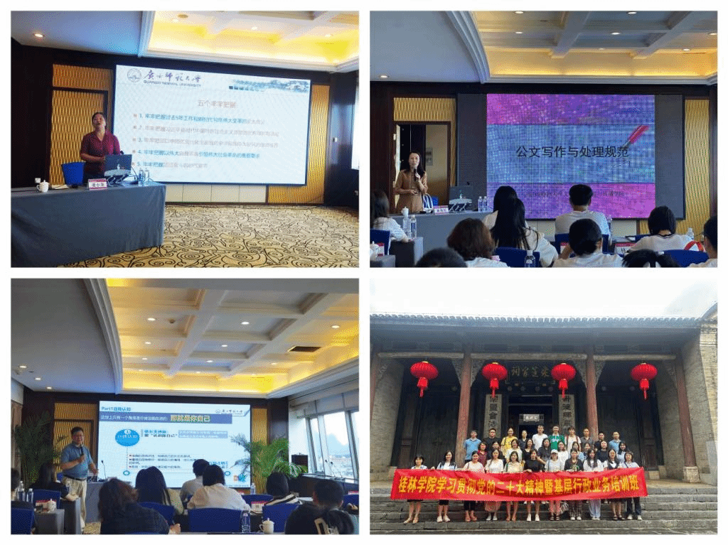 为不断适应新时代高校基层行政党务人员新要求,进一步提高基层行政管理效能,强化基层行政管理队伍建设,着力建设一支政治过硬、业务精湛、敢于担当、乐于奉献的适应学校建设与发展的基层行政管理队伍。7月5日,桂林学院2023年暑期基层行政党务人员学习贯彻党的二十大精神暨基层行政业务培训班在桂林市漓江大瀑布饭店圆满结业。来自学校各单位、各二级学院的近40名基层行政党务人员参加了此次为期三天的集中培训,培训由广西师范大学继续教育学院承办。