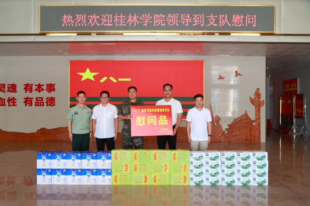 7月27日上午,在中国人民解放军建军96周年来临之际,校党委副书记、纪委书记、副校长邓志平,学生事务处(部)负责人等一行前往武警桂林支队开展拥军慰问活动,为广大官兵送去节日的问候和祝福。