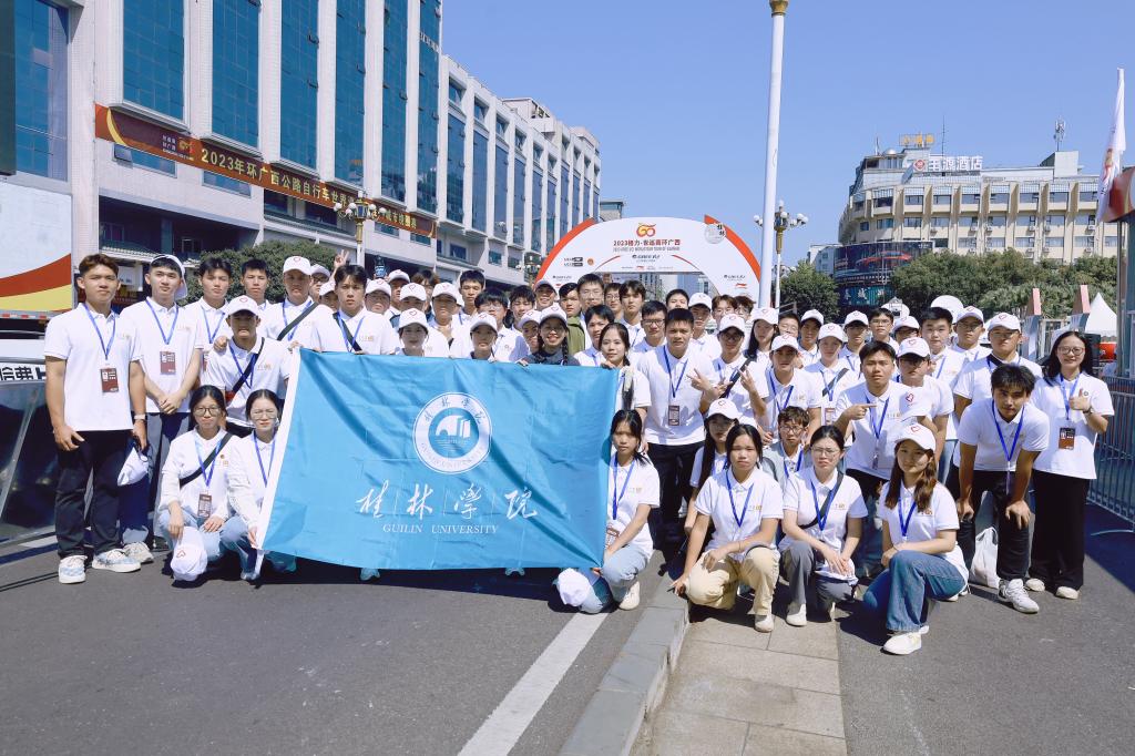 2023年环广西公路自行车世界巡回赛10月17日在“山水甲天下”的桂林收官,在本次赛事(桂林段)中,我校共派出391名学生志愿者助力本次赛事的顺利开展。其中10月15日至18日,102名志愿者前往市区桂林漓江大瀑布饭店、桂林市中心广场、桂林两江国际机场等地协助组委会做好相关会务工作;10月17日,89名志愿者在市区部分点位协助做好安保工作、200名志愿者在雁山段协助做好道路交通管制工作。