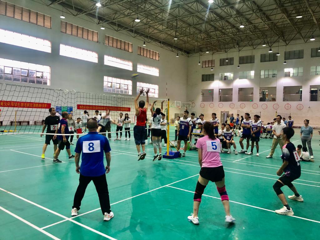 本次比赛为男女混合队赛制,共分两个阶段,第一阶段为小组循环赛,第二阶段为交叉淘汰赛。来自全校16支代表队参加比赛,讲台上,他们是教育事业的先锋,诲人不倦;球场上,他们是奋勇拼搏的赛者,勇争第一。竞赛中的发球、接球、一传、二传、扣球等环节衔接有序,精彩纷呈,既有激烈的攻守,又有互相的包容,欢快而精彩的竞赛场面给现场观众留下了深刻的印象。