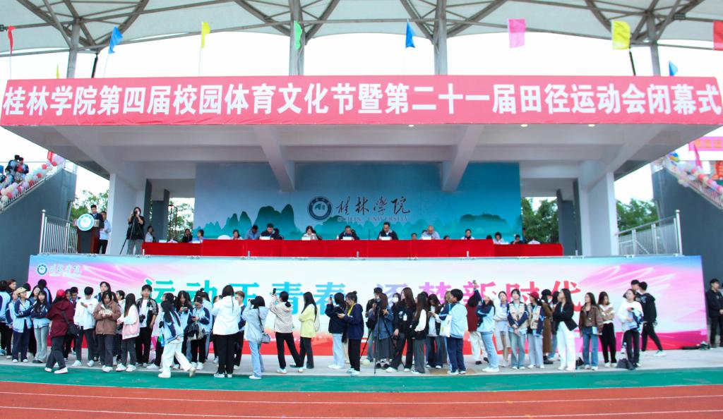 校党委副书记、纪委书记、副校长、体委主任邓志平致闭幕词并宣布第二十一届田径运动会闭幕。他首先代表学校向为本次田径运动会作出积极贡献的各位裁判员、工作人员、志愿者们表示感谢,向勇于参与、顽强拼搏、获得各项荣誉和优异成绩的团体和个人表示祝贺。他表示,本届田径运动会的成功举办,充分展示了我校体育工作的丰硕成果,展示了学校体育事业发展成就,展现了广大师生体育运动的风采,为推动我校群众性体育运动和竞技体育的发展谱写了新的篇章。希望广大师生继续汲取体育精神,把本届校园体育文化节中焕发出的竞赛的激情、拼搏的勇气、收获的喜悦融入日常学习、生活,牢固树立“健康体育、快乐体育、终身体育”的理念,为促进桂林学院高质量发展作出自己的贡献。