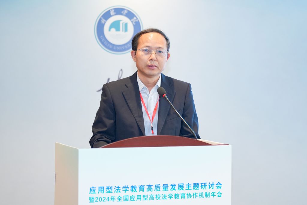 全国应用型高校法学教育协作机制秘书长刘红作协会工作报告,阐述协会一年来取得的丰硕成果,期望各协作单位深入交流和研讨,相互学习与借鉴,促进合作与发展,以培养具备卓越实践能力的应用型法律人才,从而推动新质生产力发展。并预祝本次大会圆满成功。