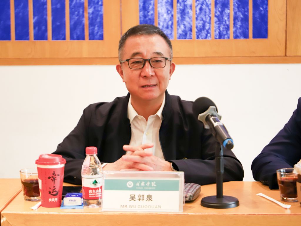 吴郭泉校长对泰国孔敬府教育厅瓦查拉·安育塔厅长一行的到访表示热烈欢迎,感谢泰国孔敬府教育厅及有关学校为我校48名学生赴泰实习所作的周到安排和关照,并介绍了我校在开展中泰文化教育合作交流方面的成果。他指出,桂林学院一直秉承“至善”办学理念,致力于建设成为高水平应用型大学,国际化办学和教育合作交流是学校内涵提升、多样化发展的重要举措。瓦查拉·安育塔厅长一行的本次到访,给桂林学院提供了新机遇,为师生搭建了更广阔的合作交流平台,希望双方以此为契机,在中文国际教育师资培养方面进一步建立友好关系,深入探讨更多元、更深层次的务实合作与交流路径,共同书写中泰友谊的新篇章。