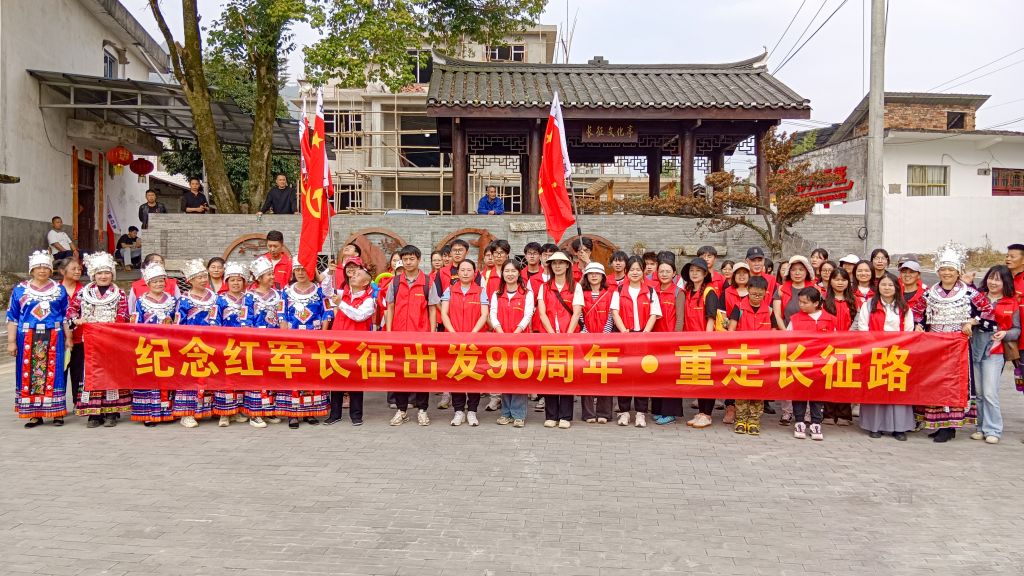 今年是红军长征出发90周年,也是新中国成立75周年。为弘扬长征精神,赓续红色血脉,学校策划并组织开展“纪念红军长征出发九十周年·重走长征路”主题活动。11月16日,首批参与的百余名师生党员来到桂林市资源县中峰镇开展相关活动。