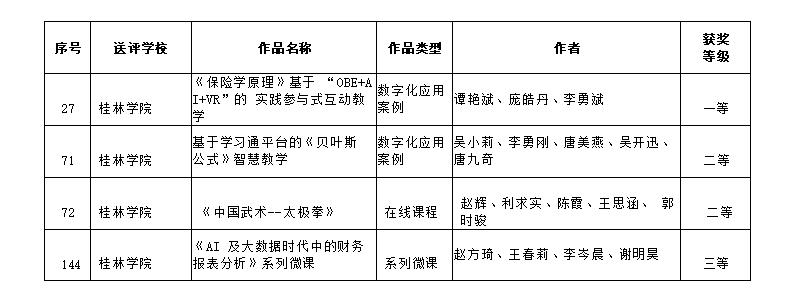 近日,自治区教育厅公布了第二十三届广西高校教育教学数字化大赛获奖名单,本次比赛我校教师获得一等奖一项、二等奖两项、三等奖一项。