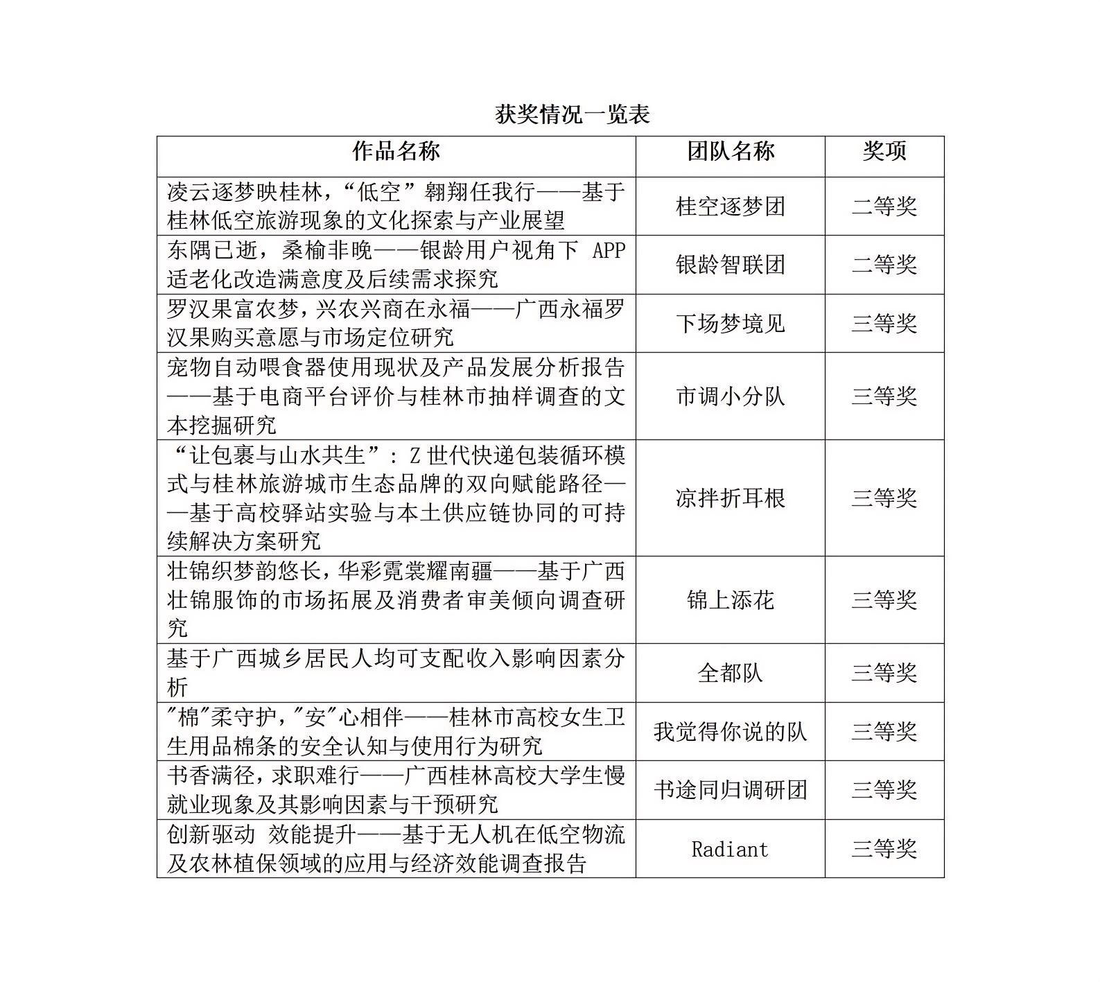 近期,由中国商业统计学会主办、广西财经学院承办的“正大杯第十五届全国大学生市场调查与分析大赛广西区选拔赛(本科生组)”顺利落下帷幕。本次大赛吸引了广西区内30所高校的7500余名本科生参加,322支团队晋级区赛。经过激烈角逐,我校参赛团队凭借扎实的专业知识、出色的团队协作以及创新的研究思路,在众多参赛队伍中脱颖而出,最终荣获二等奖2项,三等奖8项。
