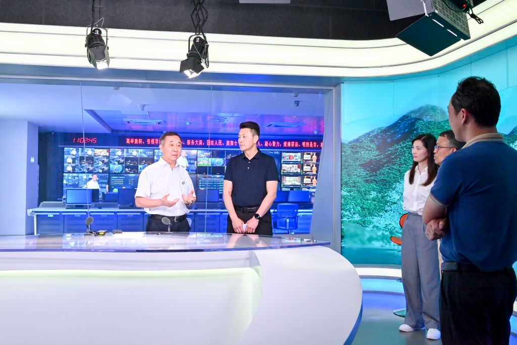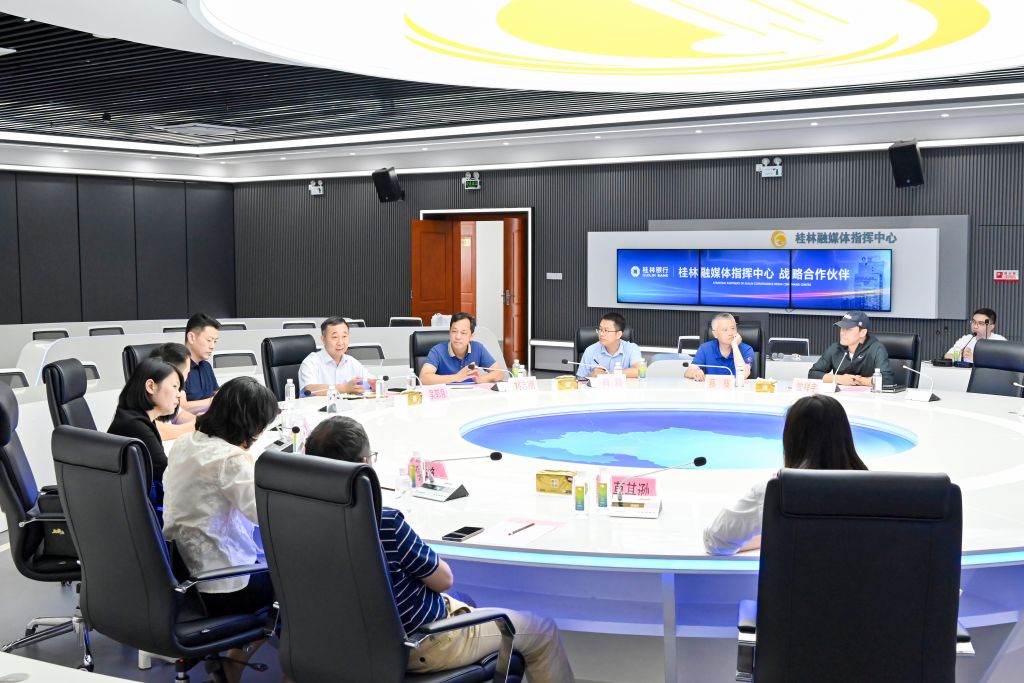 座谈会后,吴郭泉一行深入考察了桂林市融媒体中心,并与中心相关人员进行座谈,全面了解融媒体中心“策、采、编、发”一体化运作流程。双方就共建实习实践基地达成初步共识。