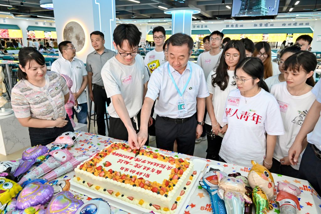 活动在切蛋糕仪式中开始。吴郭泉与师生代表共同切分生日蛋糕,现场气氛温馨融洽。午餐期间,校长与师生们亲切交流,关心询问同学们的学习生活情况,分享自己的求学经历,勉励大家勤奋学习、追求进步。